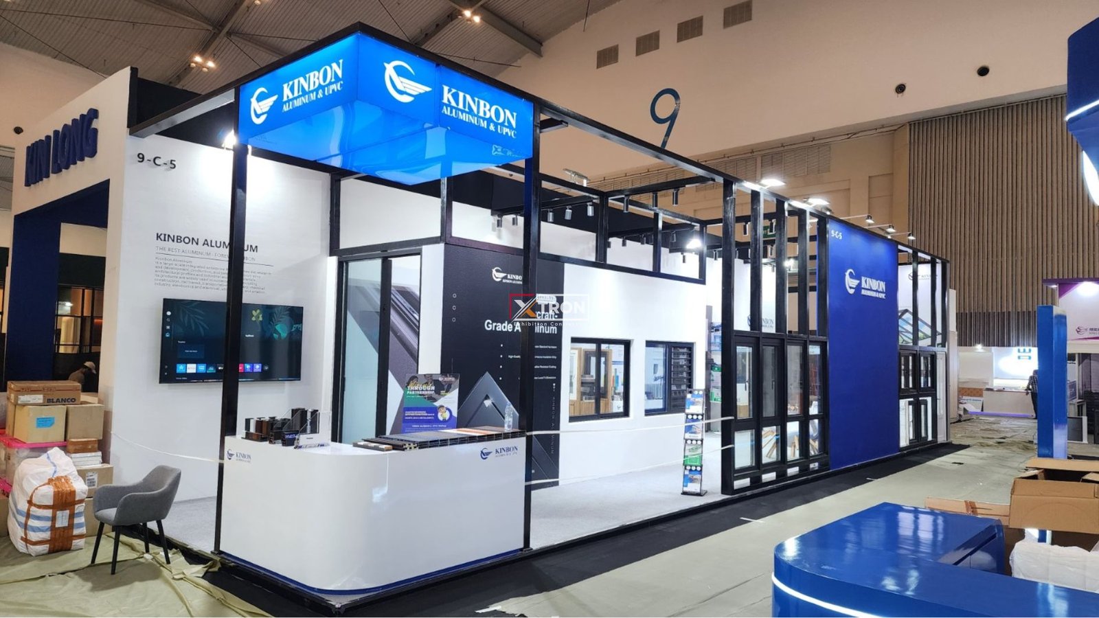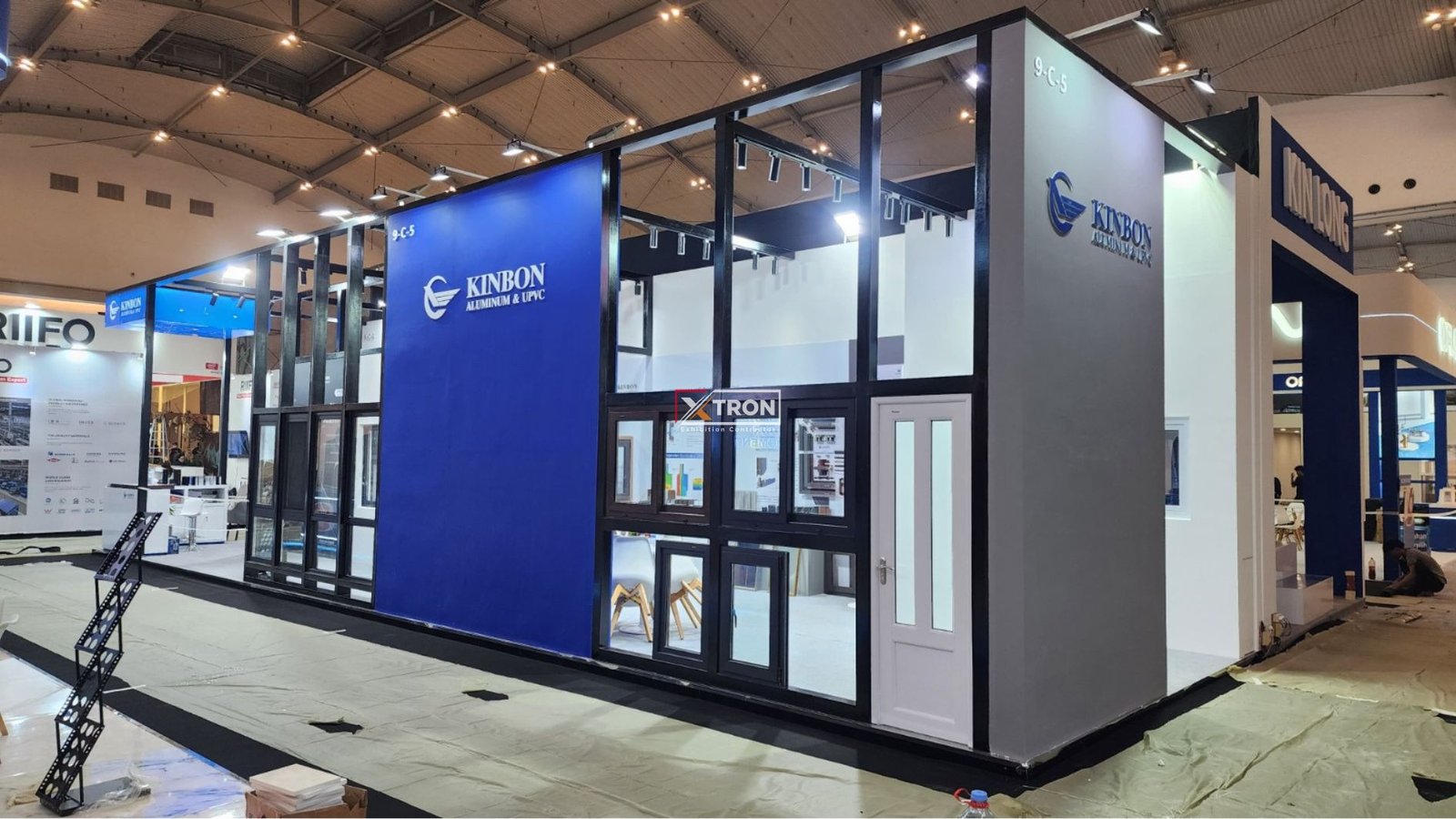 Sebagai kontraktor Booth Pameran Jakarta, Xtron Pameran memastikan setiap detail booth Kinbon dibangun dengan presisi. Rangka konstruksi dibuat kuat namun ramping, panel display dipasang rapi, hingga instalasi jendela dan pintu produk asli Kinbon yang memperlihatkan kualitas secara langsung kepada pengunjung.