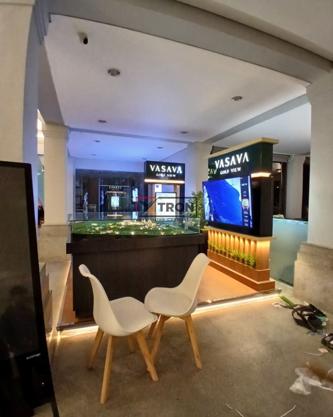 Dalam proyek Booth Vasava ini, tim kami menghadirkan desain yang mengedepankan estetika visual sekaligus kenyamanan pengunjung. Penggunaan material berkualitas, pencahayaan warm LED, serta sentuhan elemen kayu dan tanaman dekoratif menciptakan suasana yang profesional dan welcoming. Selain itu, integrasi layar digital dan miniatur display kawasan membuat informasi produk dapat tersampaikan secara interaktif dan efektif.