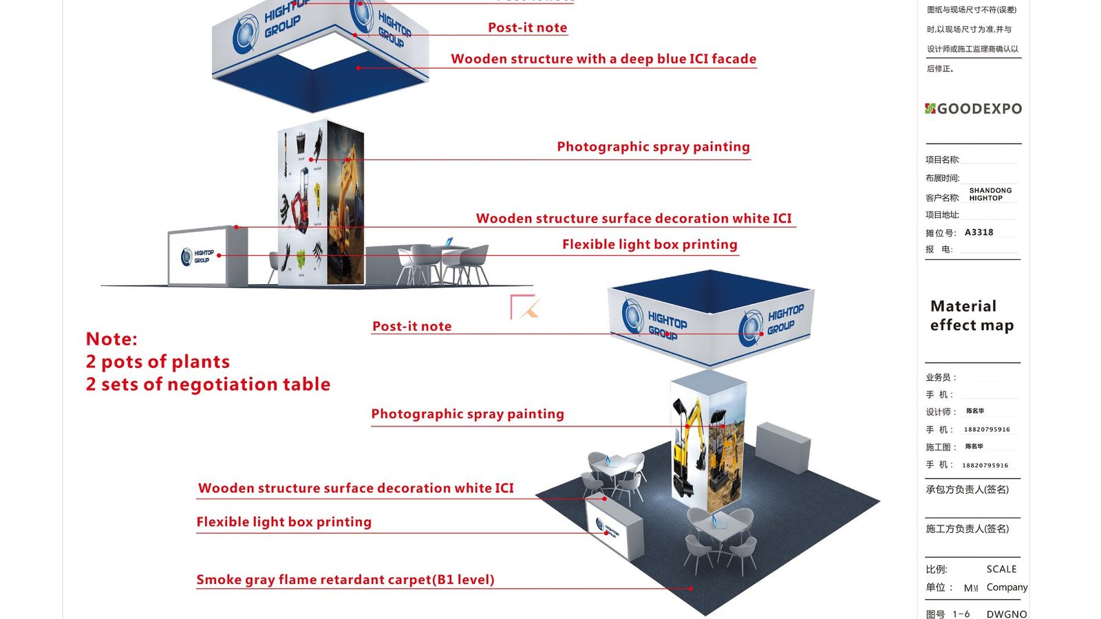Selain itu, booth dilengkapi ruang negosiasi dengan meja kursi yang nyaman, serta sentuhan dekorasi tanaman yang memberikan kesan lebih segar. Untuk meningkatkan visibilitas, Xtron Pameran menambahkan hanging sign persegi dengan pencahayaan optimal agar brand Hightop terlihat dari segala sudut pameran. Booth ini juga dirancang dengan sirkulasi pengunjung yang baik sehingga memudahkan interaksi antara tim Hightop dengan calon klien. Area display tertata rapi, menghadirkan suasana profesional namun tetap ramah bagi pengunjung. Setiap elemen dirancang detail, memastikan booth tidak hanya menarik perhatian tetapi juga berfungsi maksimal untuk mendukung tujuan pameran. Booth Hightop berukuran 6×6 meter di INA Construction 2025 hadir dengan desain modern, area display rapi, ruang negosiasi nyaman, serta hanging sign persegi bercahaya optimal, memastikan brand terlihat jelas dari berbagai sudut pameran dan menarik perhatian pengunjung. Kami memberikan kualitas terbaik untuk booth anda.