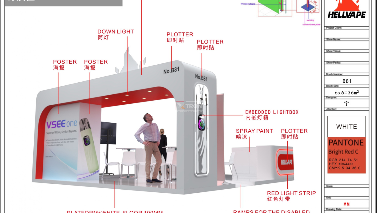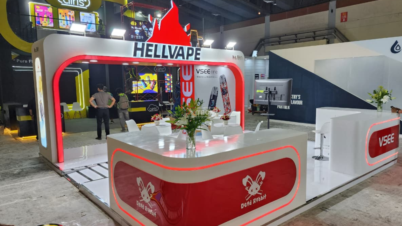Salah satu project terbaru dari xtronpameran.com adalah pembangunan Booth Hellvape berukuran 6×6 meter pada ajang Vape Fair 2025 yang digelar di JICC Hall, 30–31 Agustus 2025. Booth ini dirancang untuk menonjolkan identitas Hellvape sebagai brand ternama di industri vape dengan tampilan yang clean namun tetap elegan.