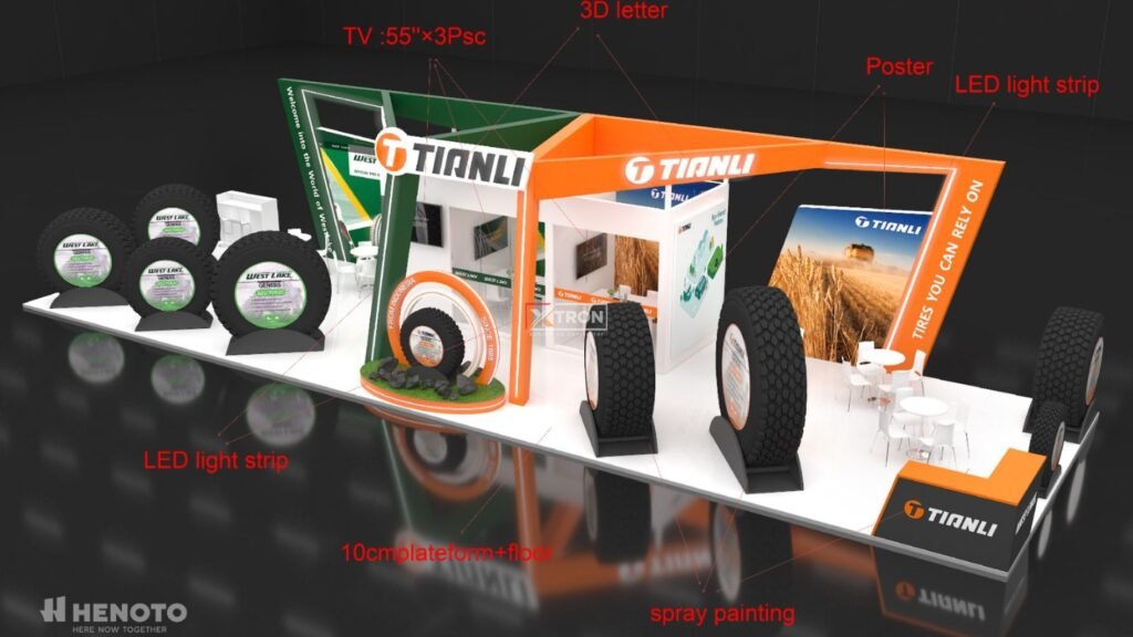 Kontraktor Pameran Jakarta yang berpengalaman, Xtron Pameran dipercaya menangani proyek booth 20×6 meter untuk brand Tianli di Mining Indonesia 2025. Proyek ini menjadi salah satu bukti komitmen kami dalam menghadirkan desain booth yang kuat, modern, dan sesuai karakter industri pertambangan.