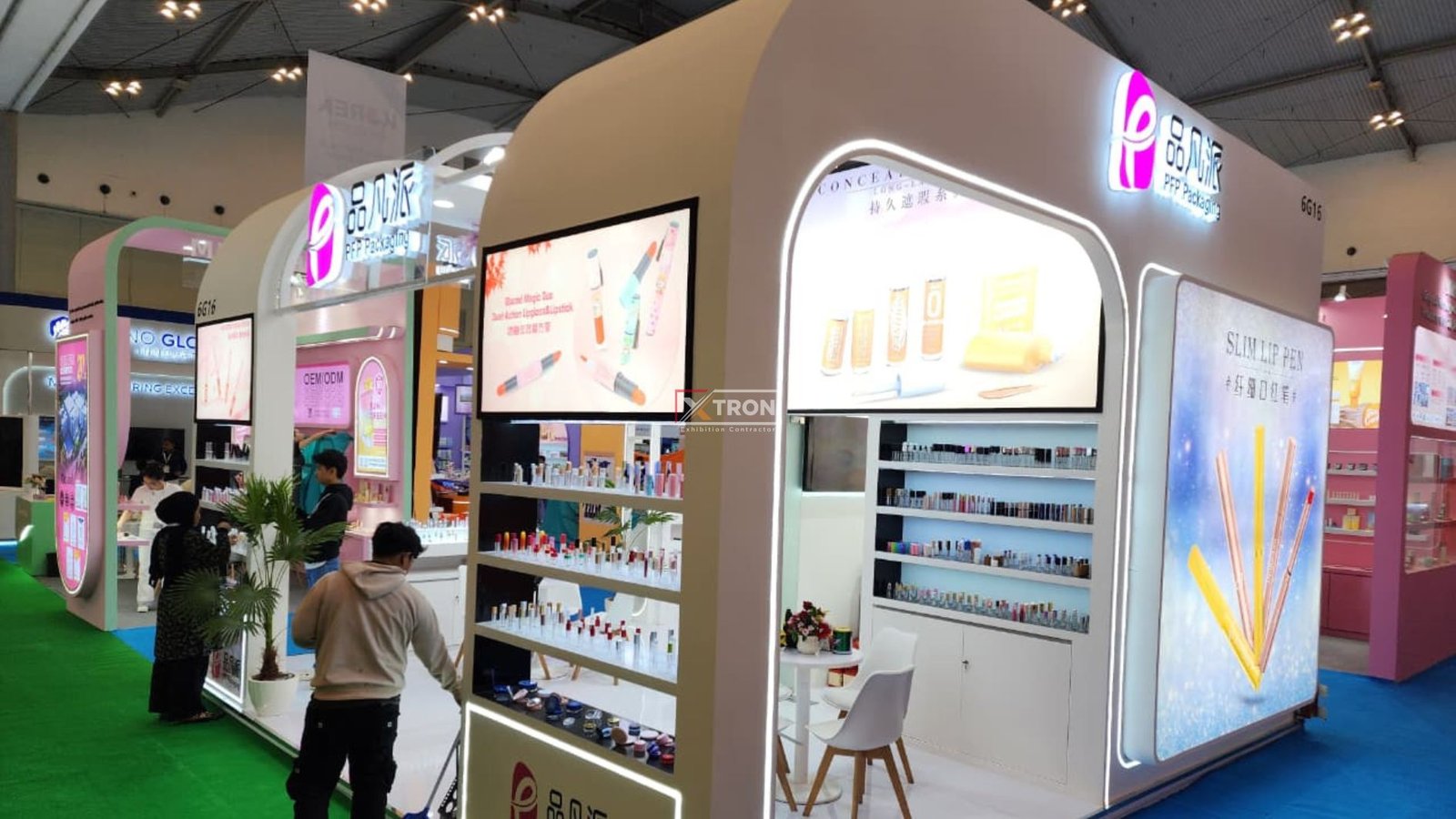 Sebagai Vendor Pameran berpengalaman, Xtron Pameran memahami bahwa setiap brand memiliki karakter unik yang perlu ditonjolkan melalui desain booth. Dalam proyek booth PFP Packaging di Cosmobeauté Indonesia 2025, Xtron menghadirkan sentuhan elegan dengan perpaduan warna lembut, pencahayaan LED modern, serta tata letak yang mengundang interaksi. Setiap elemen dirancang agar pengunjung dapat merasakan pengalaman visual yang nyaman dan profesional.